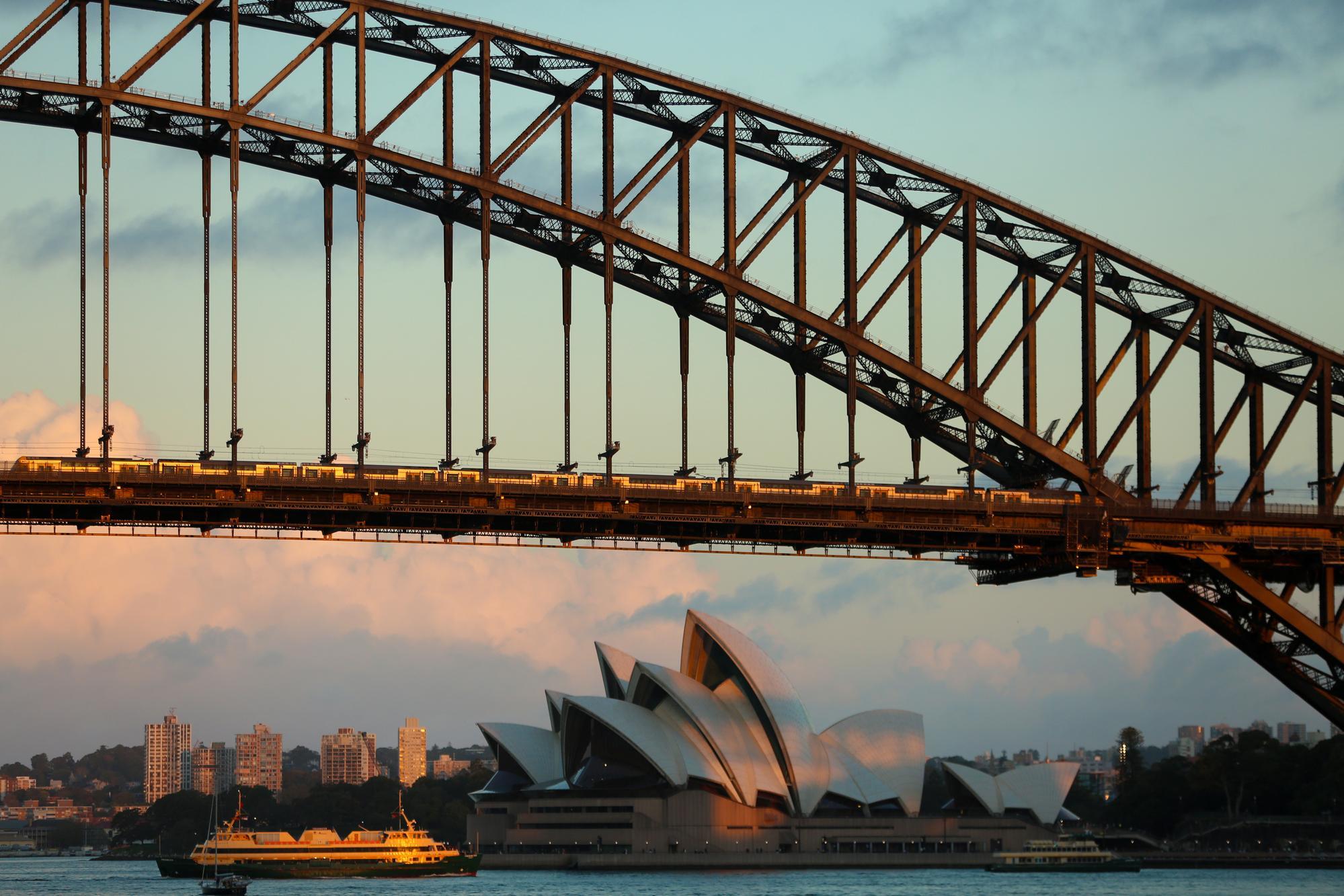 这是2024年5月13日拍摄的落日时分的澳大利亚悉尼歌剧院和海港大桥。新华社记者马平摄
